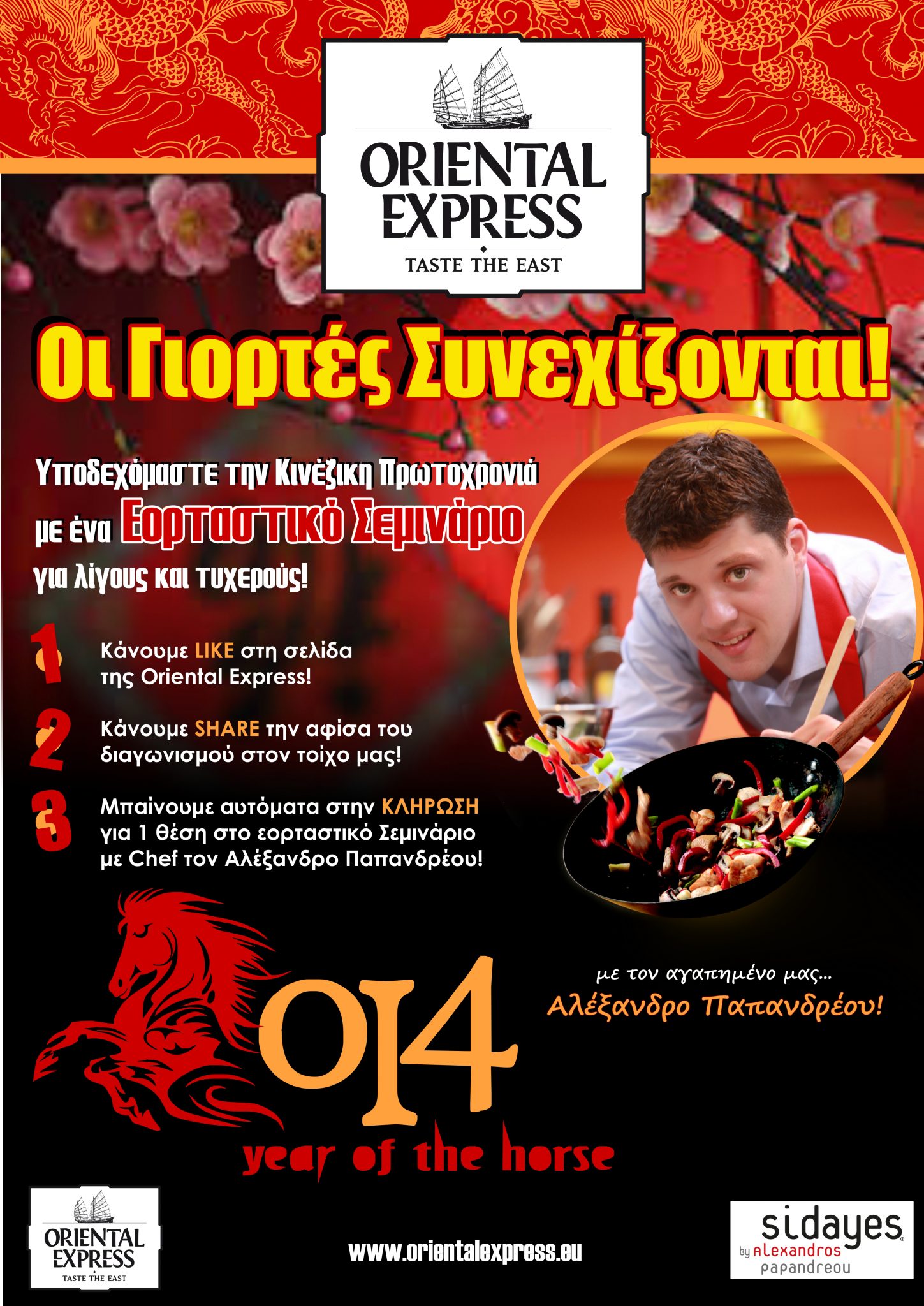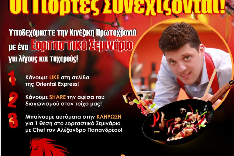 Η σελίδα Oriental Express διοργανώνει διαγωνισμό και σας δίνει τη δυνατότητα να κερδίσετε 1 θέση στο σεμινάριο μαγειρικής με τον Αλέξαδνρο Παπανδρέου!