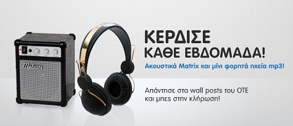 Η σελίδα του ΟΤΕ διοργανώνει διαγωνισμό και σας δίνει τη δυνατότητα να κερδίσετε φορητά ηχεία mp3 και ακουστικά Μatrix κάθε εβδομάδα.