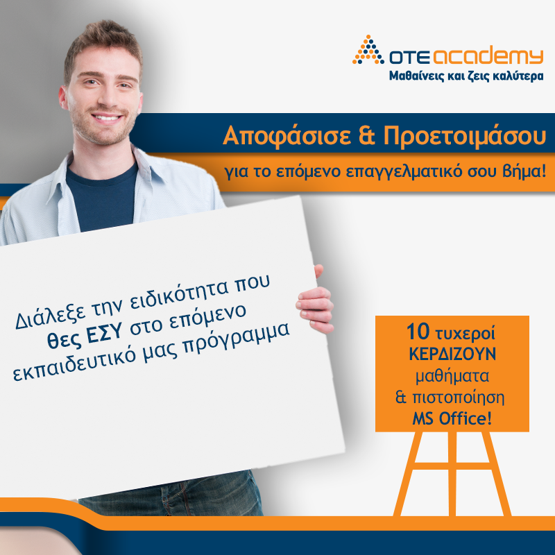 Η OTEACADEMY διοργανώνει διαγωνισμό και δίνει τη δυνατότητα σε 10 τυχερούς να κερδίσουν δωρεάν μαθήματα και πιστοποίηση ECDL – Ms Office!