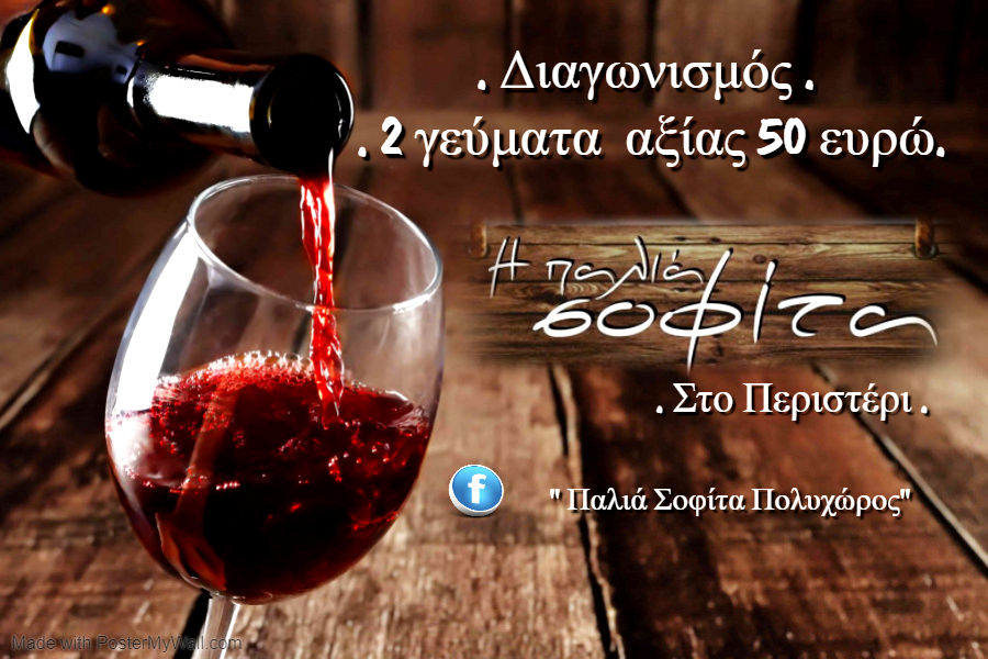 Η Παλιά Σοφίτα διοργανώνει διαγωνισμό και δίνει τη δυνατότητα σε 2 τυχερά ζευγάρια να κερδίσουν ένα γεύμα με μία φιάλη κρασί, για το Σάββατο 11.1.2020!