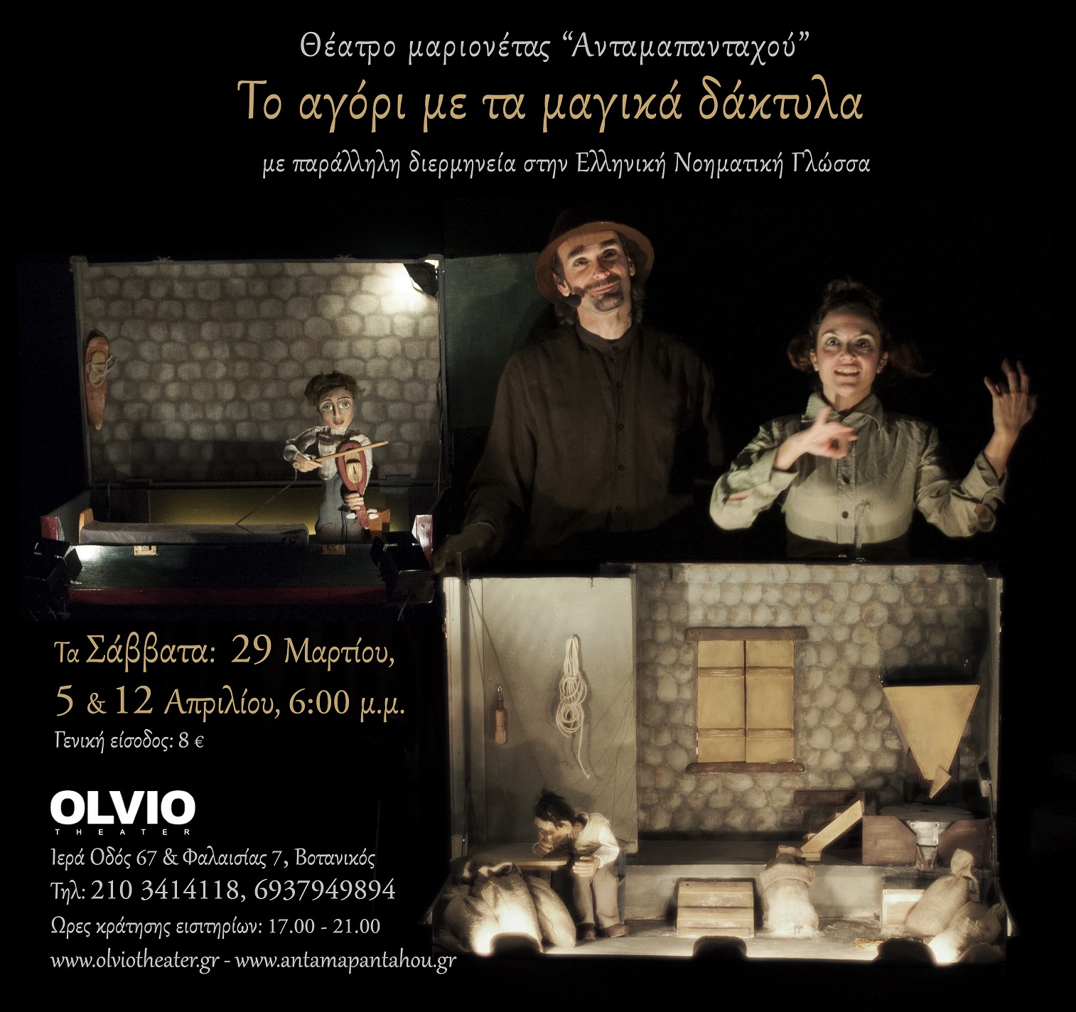 Tο pamebolta.gr προσφέρει 2 διπλές προσκλήσεις για την παιδική παράσταση «Το αγόρι με τα μαγικά δάκτυλα» με παράλληλη διερμηνεία στην Ελληνική Νοηματική Γλώσσα για το Σάββατο 29 Μαρτίου 2014 και ώρα 18:00.