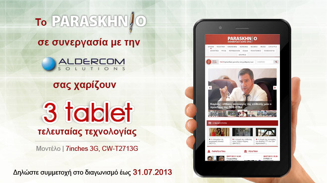 Το paraskhnio.gr διοργανώνει διαγωνισμό και σας δίνει τη δυνατότητα να κερδίσετε 3 tablet τελευταίας τεχνολογίας.