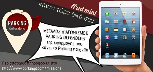 Κάθε Δευτέρα για τις επόμενες 5 εβδομάδες στο parkingd.com θα ανακοινώνετε το mission της εβδομάδας, δηλαδή μια αποστολή που οι Defenders θα έχουν μια εβδομάδα περιθώριο για να ολοκληρώσουν επιτυχημένα. Όσοι Defenders καταφέρουν να ολοκληρώσουν και τα πέντε mission θα μπούνε σε κλήρωση, από την οποία θα προκύψει ο Top Defender και ιδιοκτήτης ενός brand new iPad mini.