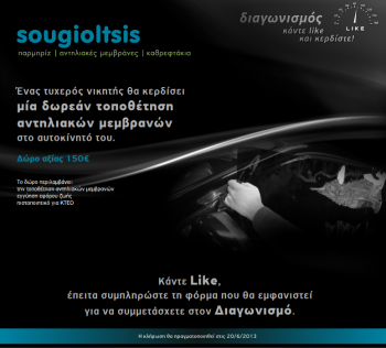 Το κατάστημα Parmpriz διοργανώνει διαγωνισμό και σας δίνει τη δυνατότητα να κερδίσετε αντηλιακές μεμβράνες για το αυτοκίνητό σας και την τοποθέτηση τους δωρεάν στο κατάστημα στη Θεσσαλονίκη. Δώρο αξίας 150€.