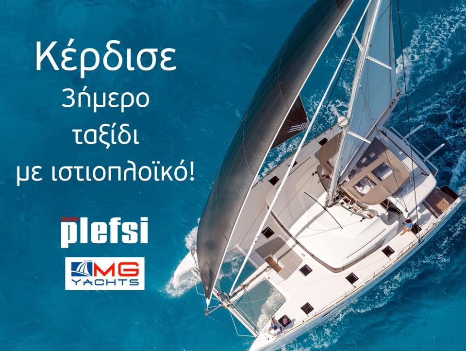 To Περιοδικό Πλεύση διοργανώνει διαγωνισμό και σας δίνει τη δυνατότητα να κερδίσετε 3ήμερο με ιστιοπλοϊκό σκάφος για 6 άτομα, από τον στόλο της MG Yachts μέσα στον Οκτώβριο!