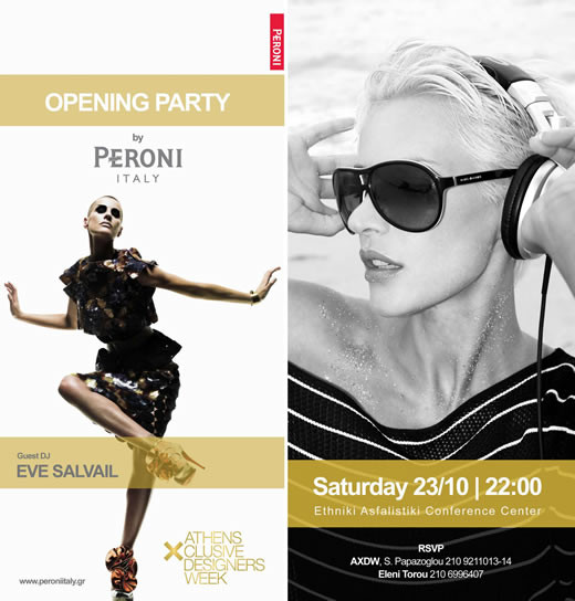 Αν θέλεις να είσαι και εσύ ένας από τους καλεσμένους του Opening Party στις 23/10 με την guest DJ Eve Salvail, πρέπει απλά να είσαι γρήγορος! Κάθε ημέρα οι 2 πρώτοι που θα κάνουν comment στην fan page της Peroni γράφοντας το ονοματεπώνυμό τους κερδίζουν μία διπλή πρόσκληση για το Opening Party (τα στοιχεία των νικητών θα συμπεριληφθούν στη λίστα των καλεσμένων).