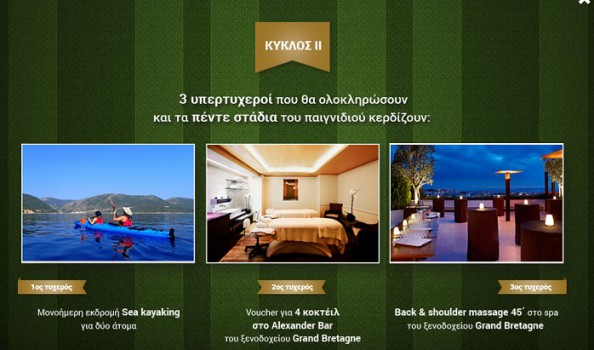 - 2ος τυχερός: voucher για 4 κοκτέιλ για το Alexander Bar του ξενοδοχείου Grand Bretagne