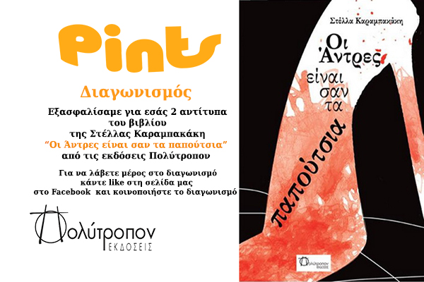 Το Pints.gr διοργανώνει διαγωνισμό και σας δίνει τη δυνατότητα να κερδίσετε 2 βιβλία από τις εκδόσεις Πολύτροπον! Το βιβλίο είναι ιδανική συντροφιά. Εξασφαλίσαμε για εσάς 2 αντίτυπα του βιβλίου της Στέλλας Καραμπακάκη “Οι Άντρες είναι σαν τα παπούτσια” από τις εκδόσεις Πολύτροπον.