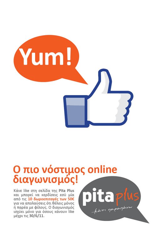 Κάνε Like στη σελίδα της Pita Plus και μπορεί να κερδίσεις εσύ μία από τις 10 δωροεπιταγές των 50€ για να απολαύσεις ότι θέλεις μόνος ή παρέα με τους φίλους σου!