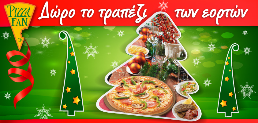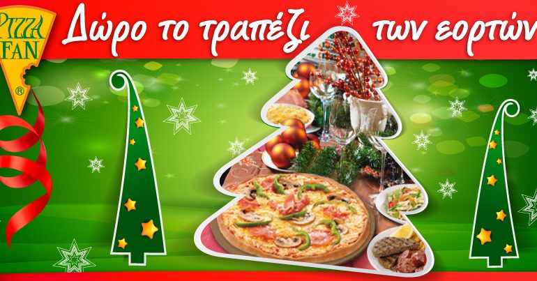 Η Pizza Fan εκτός από το να μας ανοίγει την όρεξη, ξέρει και πως να μας φτιάχνει το κέφι. Φέτος για τις γιορτές μας κάνει το τραπέζι και χαρίζει σε ένα τυχερό γεύματα αξίας 250€ για να τα χαρεί με τους δικούς του ανθρώπους τις γιορτές.