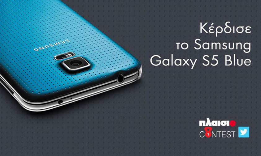Το ΠΛΑΙΣΙΟ διοργανώνει διαγωνισμό στο Twitter και σας δίνει τη δυνατότητα να κερδίσετε ένα Samsung GalaxyS5 Blue! Αρκεί ένα follow –> https://twitter.com/PlaisioOfficial και ένα retweet –> https://twitter.com/PlaisioOfficial/status/450960149193056258.