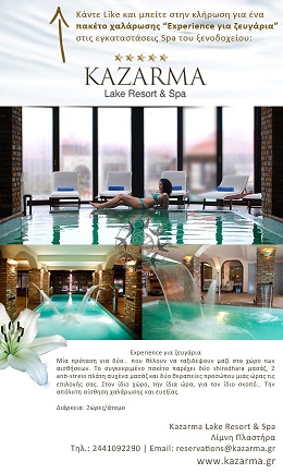 Το plastiras-lake.gr διοργανώνει διαγωνισμό και σας δίνει τη δυνατότητα να κερδίσετε ένα πακέτο χαλάρωσης στις εγκαταστάσεις Spa του ξενοδοχείου Kazarma Lake Resort & Spa στη λίμνη Πλαστήρα.