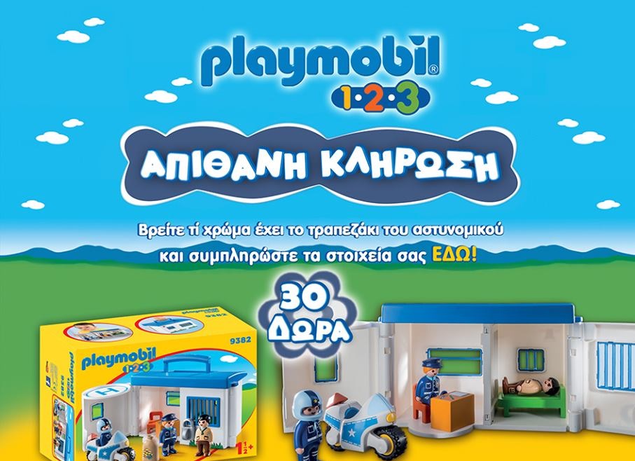 Η σελίδα Playmobil διοργανώνει διαγωνισμό και δίνει τη δυνατότητα σε 30 τυχερούς να κερδίσουν το νέο “Αστυνομικό Τμήμα Βαλιτσάκι 1.2.3” !