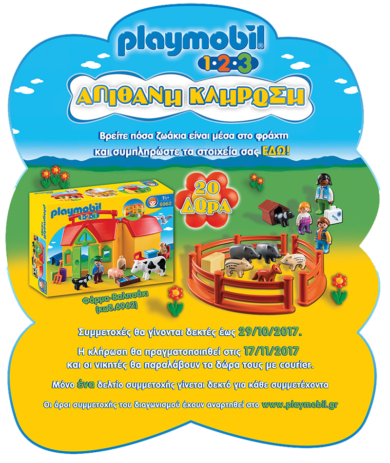 Η σελίδα Playmobil διοργανώνει διαγωνισμό και σας δίνει τη δυνατότητα να κερδίσετε 20 φάρμες βαλιτσάκι!