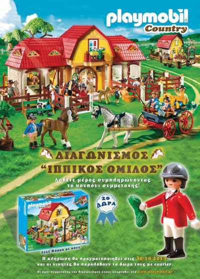 Η σελίδα των Playmobil διοργανώνει διαγωνισμό και δίνει τη δυνατότητα σε 20 τυχερούς να κερδίσουν από μία “Φάρμα με πόνυ” της PLAYMOBIL (κωδ.5222).