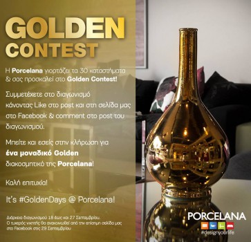 Η Porcelana γιορτάζει τα 30 καταστήματα και σας προσκαλεί στο Golden Contest! Μπείτε και εσείς στην κλήρωση της Porcelana για ένα μοναδικό Golden διακοσμητικό του Γαλλικού οίκου Asiatides!