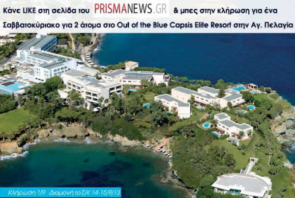 Το Prismanews.gr και Out of the Blue Capsis Elite Resort σας προσφέρουν ένα μοναδικό Σαββατοκύριακο διακοπών στο ξενοδοχειακό συγκρότημα που βρίσκεται στην Αγία Πελαγία στην Κρήτη και αποτελείται από 5 ξενοδοχεία – γειτονιές, διαφορετικού χαρακτήρα και διακόσμησης.