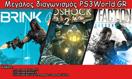 Το PS3world.GR διοργανώνει διαγωνισμό και σας δίνει τη δυνατότητα να κερδίσετε 1 Red Faction Armageddon Commander Edition,1 Far Cry 2, 2 Bioshock 2 και 3 Brink για PS3.