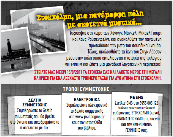 Οι εκδόσεις Ψυχογιός διοργανώνουν διαγωνισμό και σας δίνουν τη δυνατότητα να κερδίσετε ένα τριήμερο ταξίδι 2 ατόμων στη Στοκχόλμη!
