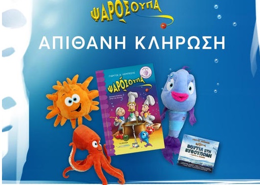 Οι εκδόσεις Ψυχογιός διοργανώνουν διαγωνισμό και δίνουν τη δυνατότητα σε 5 τυχερούς να κερδίσουν από ένα αντίτυπο του βιβλίου “Ψαρόσουπα”, ένα λούτρινο παιχνίδι από τον κόσμο της Ψαρόσουπας (στον Τόλη το χταπόδι, τη Ρίτσα την πεσκανδρίτσα ή τον Βρασίδα τον αχινό) και ένα CD με το μιούζικαλ «Βουτιά στη Βυθούπολη»!