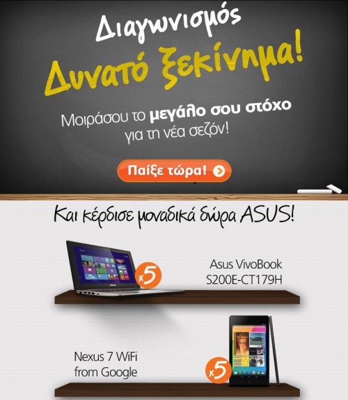 Το Public διοργανώνει διαγωνισμό και σας δίνει τη δυνατότητα να κερδίσετε 5 Asus Vivobook laptops και 5 Nexus 7 from Google tablets!