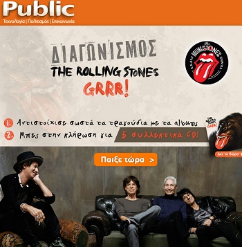 Το Public διοργανώνει διαγωνισμό και δίνει τη δυνατότητα σε 5 τυχερούς να κερδίσουν τη συλλογή Grrr! (Greatest Hits) 2CD, με τα μεγαλύτερα hits όλων των εποχών των Rolling Stones.