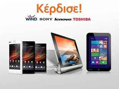 Το Public διοργανώνει διαγωνισμό και σας δίνει τη δυνατότητα να κερδίσετε 1 Sony Xperia M smartphone, 1 Sony Xperia L smartphone, 1 Sony Xperia SP smartphone, 4 tablet Lenovo Yoga 8GB Wifi, 3 tablet Toshiba Encore και 10 πακέτα Wind με 1000′ δωρεάν χρόνο ομιλίας προς όλους.