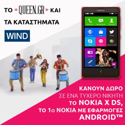 Το Queen.gr σε συνεργασία με τα καταστήματα WIND, χαρίζουν σε ένα τυχερό νικητή το νέο Nokia X DS, το πρώτο Nokia που υποστηρίζει εφαρμογές Android™ παράλληλα με τις πλέον δημοφιλείς υπηρεσίες της Microsoft.