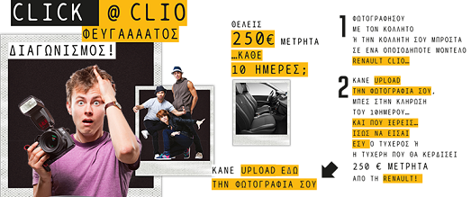 Η σελίδα Renault Greece διοργανώνει διαγωνισμό και σας δίνει τη δυνατότητα να κερδίσετε 3 δωροεπιταγές των 250€.