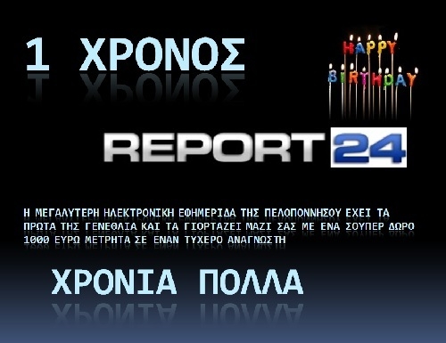 Το Report24.gr γιορτάζει τον 1 χρόνο λειτουργίας του και για να ευχαριστήσει τους αναγνώστες του διοργανώνει διαγωνισμό και χαρίζει σε έναν μεγάλο τυχερό νικητή 1000€ μετρητά!