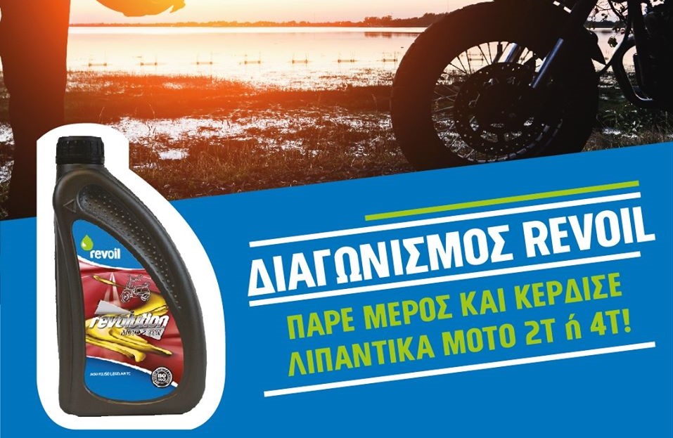 H Revoil διοργανώνει διαγωνισμό και δίνει τη δυνατότητα σε 5 τυχερούς να κερδίσουν από 4 λίτρα λιπαντικό Moto Revolution 2Τ ή 4Τ (10W-50 ή 15W-50 ή 10W-40 ή 20W-50) ανάλογα με τις προδιαγραφές της μηχανής τους!