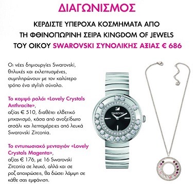 Το elle.gr διοργανώνει διαγωνισμό και σας δίνει τη δυνατότητα να κερδίσετε ένα ρολόι «Lovely Crystals Anthracite» αξίας 510€ και ένα μενταγιόν «Lovely Crystals Magenta» αξίας 176€.