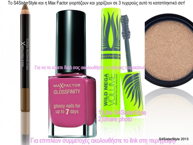 Το S4SisterStyle και η Max Factor γιορτάζουν μαζί τα 2 χρόνια του blog και χαρίζουν σε 3 τυχερές ένα σετ: βερνίκι, μολύβι σκιών, μάσκαρα & σκιά από τη σειρά wild boutique σε χρώματα έκπληξη!