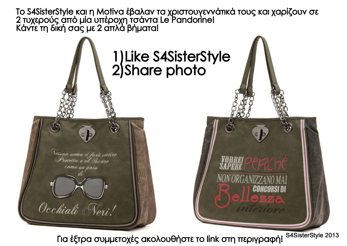 Το S4SisterStyle και η Motiva έβαλαν τα γιορτινά τους και χαρίζουν σε 2 τυχερούς από μία καταπληκτική Le Pandorine τσάντα.