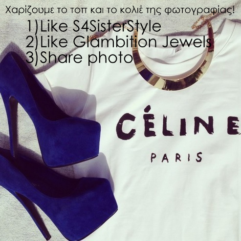 Το s4sisterstyle.blogspot.com διοργανώνει διαγωνισμό και σας δίνει τη δυνατότητα να κερδίσετε το απόλυτο σετ μόδας που δεν πρέπει να λείπει από τη ντουλάπα καμίας fashionista, το στυλάτο τοπ Celine και το πασπαρτού χρυσό κολάρο.