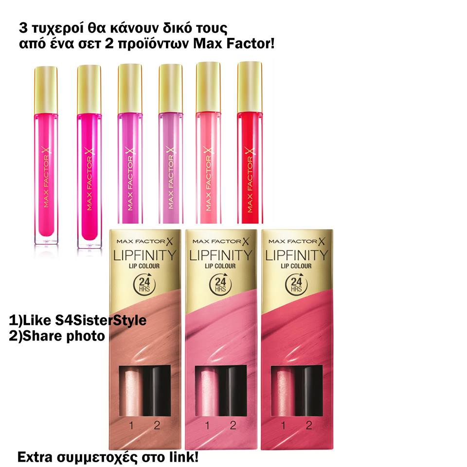 To S4SisterStyle και η Max Factor χαρίζουν σε 3 τυχερούς ένα καταπληκτικό σετ 2 προϊόντων! Το σετ περιλαμβάνει τα υπέροχα Lipfinity και Colour Elixir Gloss!