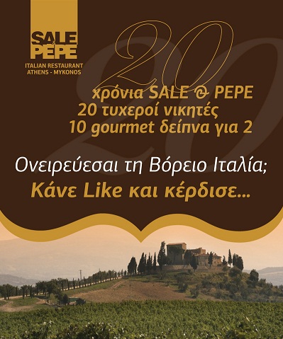 Η Sale & Pepe διοργανώνει διαγωνισμό και σας δίνει τη δυνατότητα να κερδίσετε δέκα δείπνα για δύο άτομα.