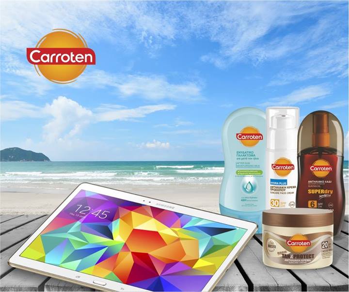 Το GALAXY Tab S δεν χρειάζεται… αντηλιακό, αφού η οθόνη του προσαρμόζεται τέλεια και κάτω από τον ήλιο! Η σελίδα Samsung Greece διοργανώνει διαγωνισμό και σας δίνει τη δυνατότητα να κερδίσετε 10 πακέτα πλήρους αντηλιακής προστασίας από το Carroten | STAR του καλοκαιριού!