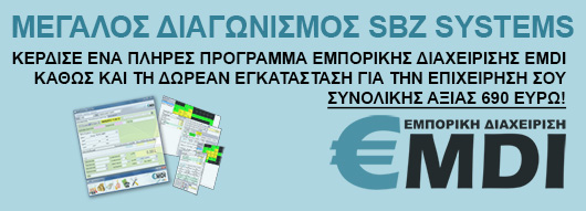 Το sbzsystems.com διοργανώνει διαγωνισμό και σας δίνει τη δυνατότητα να κερδίσετε ένα πλήρες πρόγραμμα εμπορικής διαχείρισης EMDI για την επιχείρησή σου.