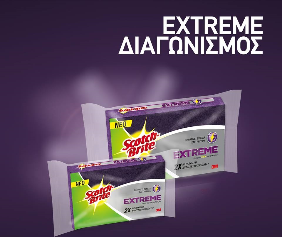 Η Scotch-Brite διοργανώνει διαγωνισμό και δίνει τη δυνατότητα σε 40 τυχερούς να κερδίσουν το νέο σφουγγάρι Scotch-Brite EXTREME που καθαρίζει τις σκληρές βρομιές!