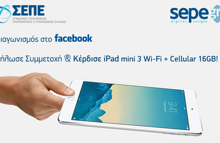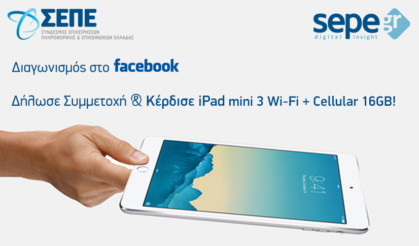 Ο sepe.gr διοργανώνει διαγωνισμό και σας δίνει τη δυνατότητα να κερδίσετε 1 Apple iPad mini 3 Wi-Fi + Cellular 16GB!