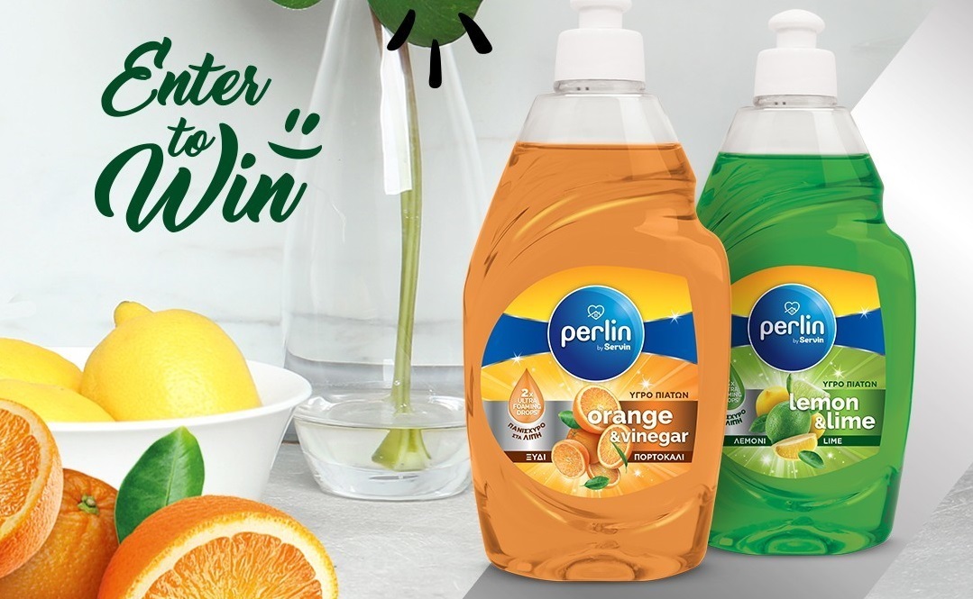Η Servin Hellas διοργανώνει διαγωνισμό και δίνει τη δυνατότητα σε 5 τυχερούς να κερδίσουν τα νέα απορρυπαντικά πιάτων Perlin με τα εκρηκτικά αρώματα Lemon-Lime και Orange-Vinegar!