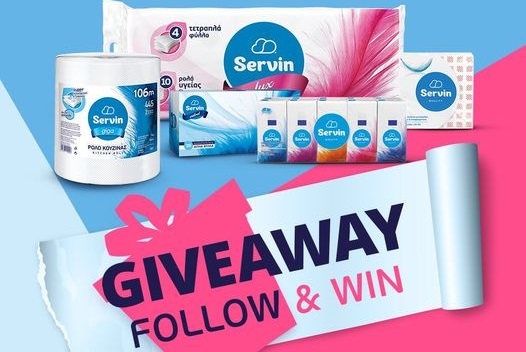 Η Servin Hellas διοργανώνει διαγωνισμό και δίνει τη δυνατότητα σε 12 τυχερούς να κερδίσουν από ένα πακέτο με 5 προϊόντα χαρτικών!