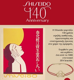 H Shiseido γιορτάζει 140 χρόνια και διοργανώνει διαγωνισμό και σας δίνει τη δυνατότητα να κερδίσετε 1000 επετειακά ZEN bracelets.