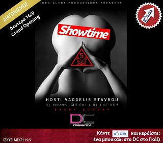 Η σελίδα του Showtime Party διοργανώνει διαγωνισμό και σας δίνει τη δυνατότητα να κερδίσετε ένα μπουκάλι για 6 στο DC στο Γκάζι για τις 16/9.