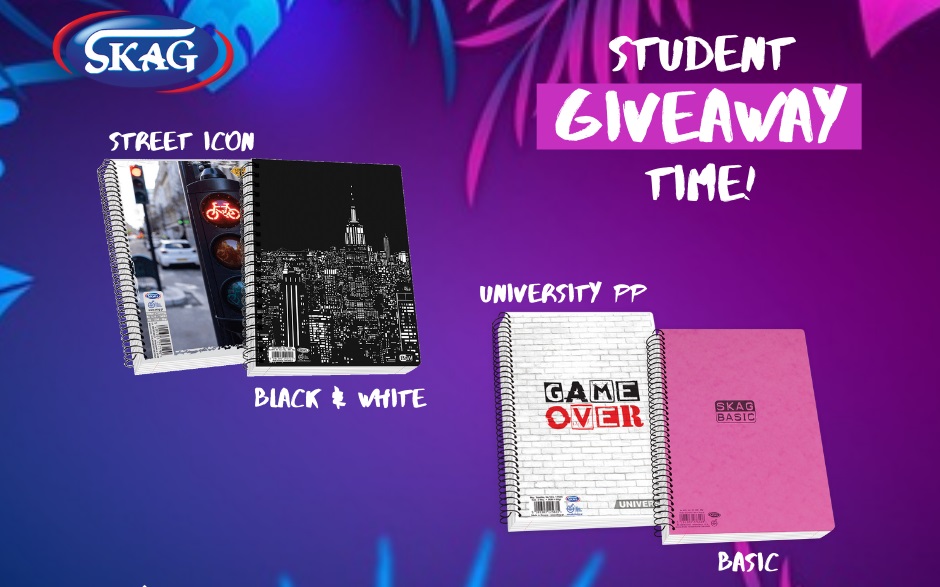 Η Skag διοργανώνει διαγωνισμό και δίνει τη δυνατότητα σε 3 τυχερούς να κερδίσουν από ένα πακέτο θεματικών τετραδίων υψηλής ποιότητας από 4 διαφορετικές & αγαπημένες σειρές προϊόντων!