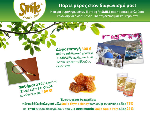 Διαγωνισμός Smile με δώρο ταξίδια, μαθήματα τένις και συμπληρώματα διατροφής SMILE