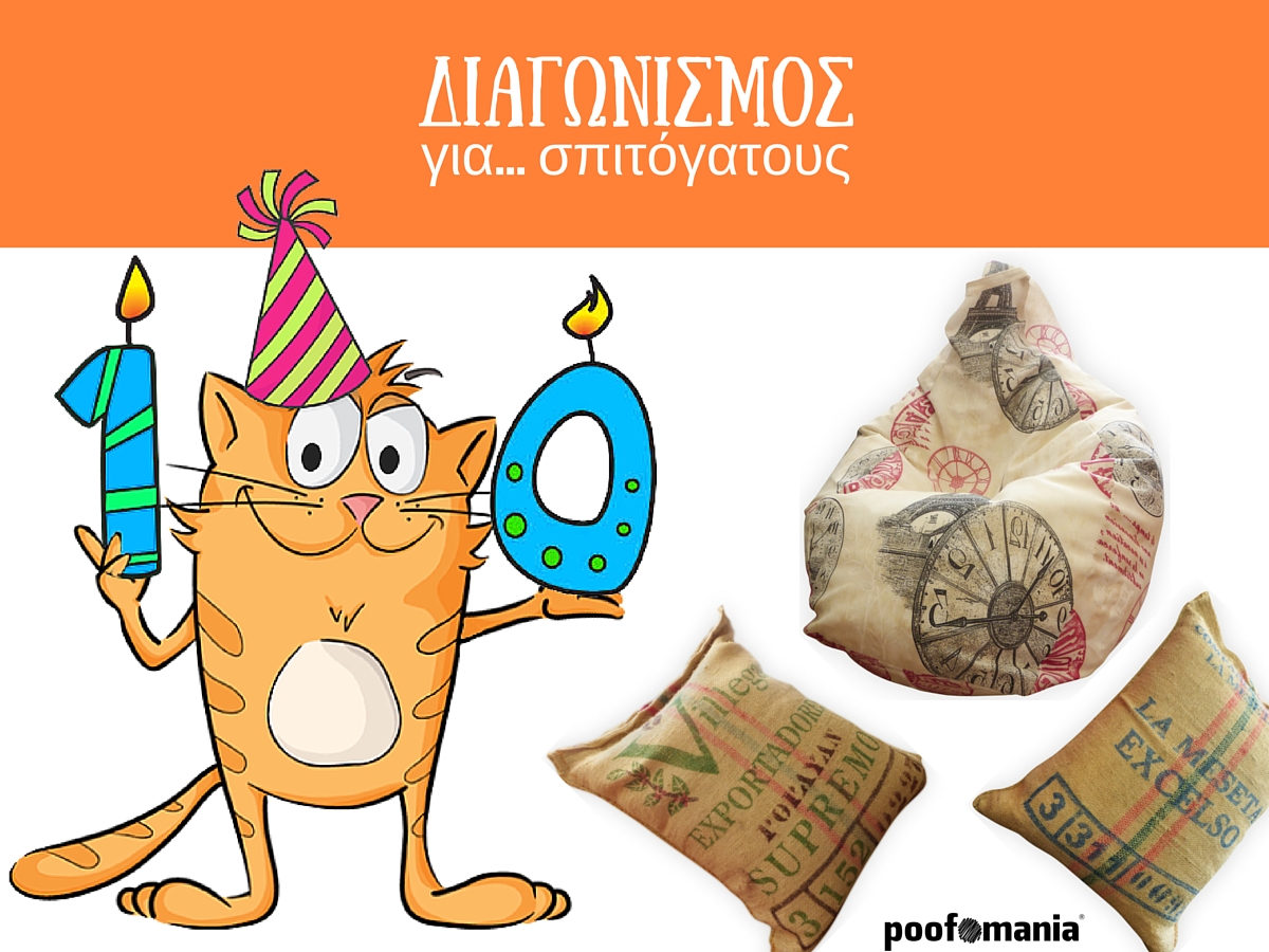 Ο Spitogatos.gr διοργανώνει διαγωνισμό και δίνει τη δυνατότητα σε 3 τυχερούς να κερδίσουν 1 πουφ-σάκος και 2 μαξιλάρες-τσουβάλια από την Poofomania!