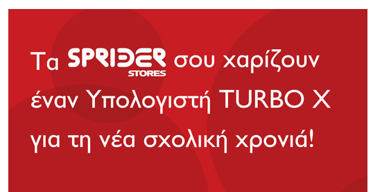 Διαγωνισμός Sprider Stores "Back to School" με δώρο έναν υπολογιστή Turbo X