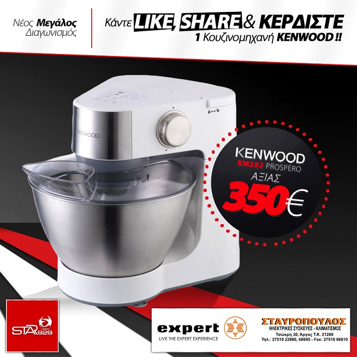 To Star Fm 929 διοργανώνει διαγωνισμό και σας δίνει τη δυνατότητα να διεκδικήσετε μία κουζινομηχανή Kenwood ΚΜ282 Prospero, αξίας 350€!